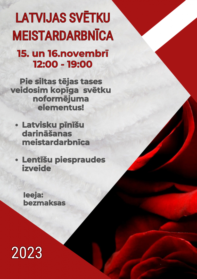 - “Sajūti Latviju” Latviskās garšas mini brančs – kopā gatavojam savai Latvijai. Interaktīvās un erudīcijas spēles par Latviju.