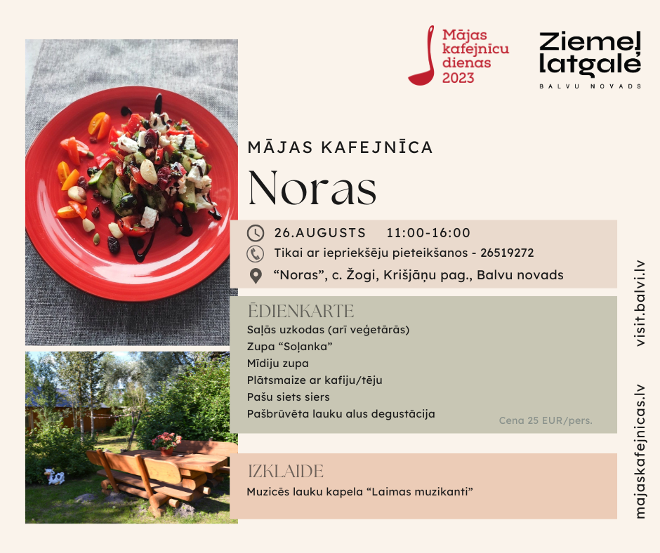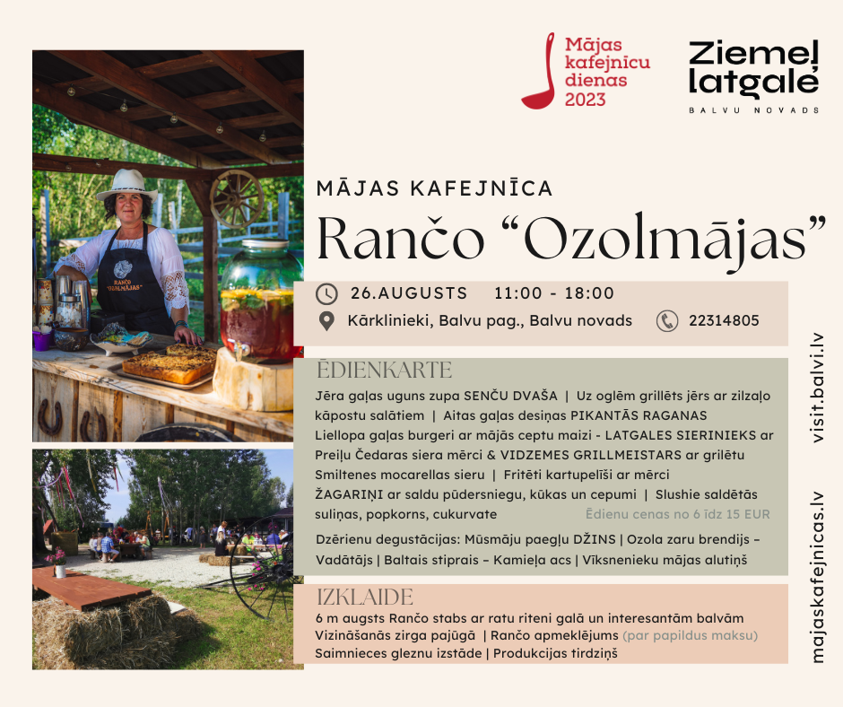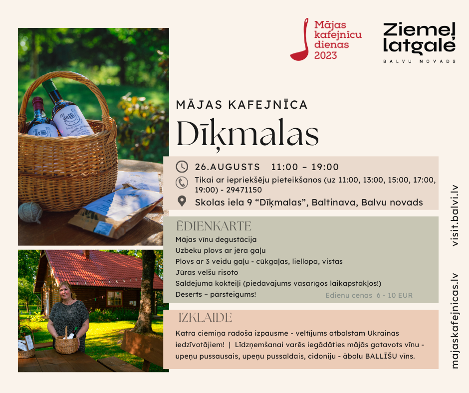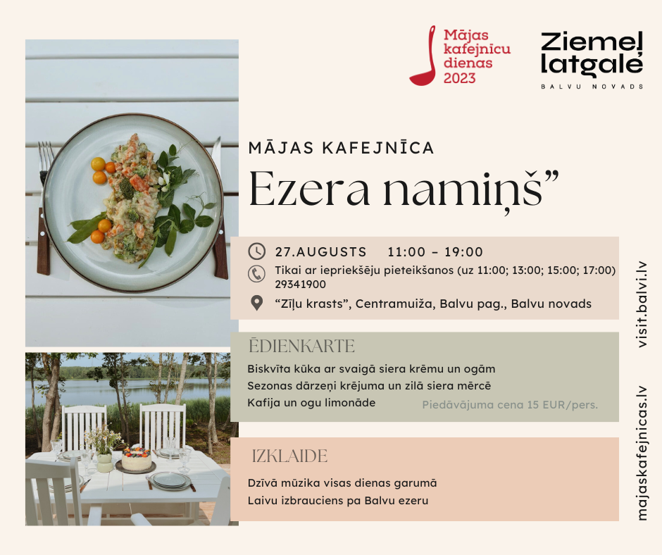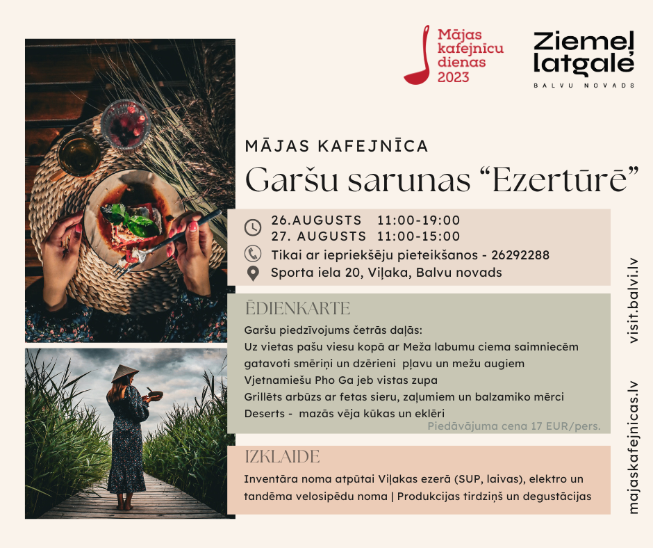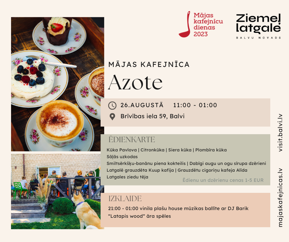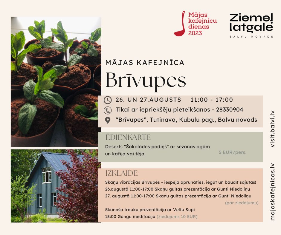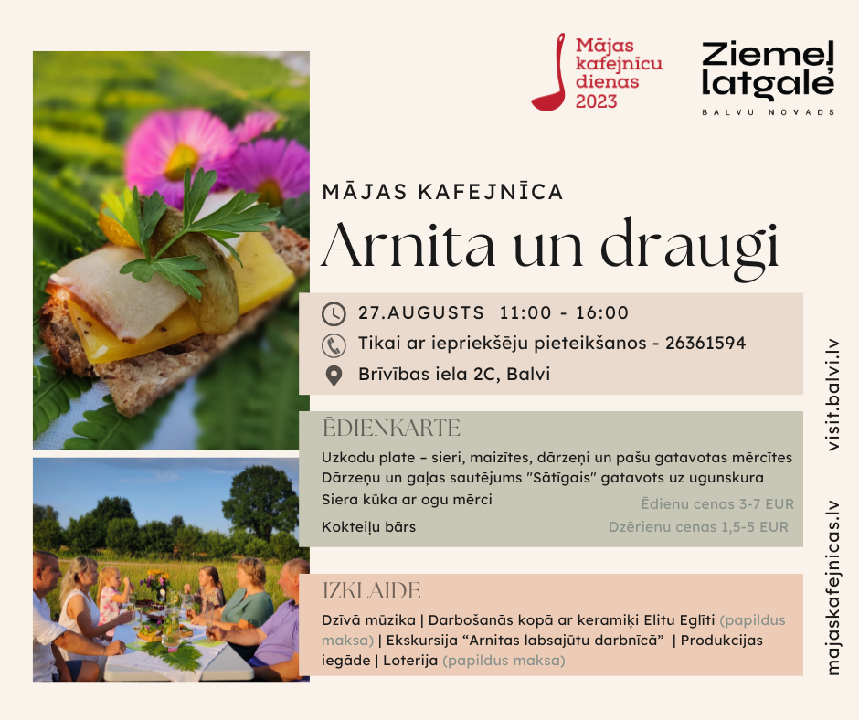 Plašāk par katras kafejnīcas piedāvājumu – Facebook pasākuma lapā “Mājas kafejnīcas Balvu novadā 2023” , www.majaskafejnicas.lv un visit.balvi.lv.