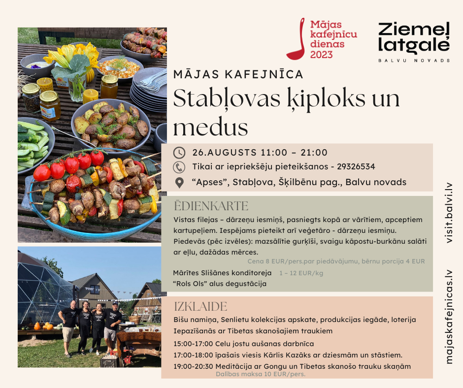 26. un 27. augustā Balvu novada saimnieces un saimnieki būs parūpējušies par īpašu noskaņu un gardiem ēdieniem, atverot savu saimniecību durvis, pagalmus, terases, dārzus un ierīkojot tajos improvizētas mājas kafejnīcas ar kultūras programmām, produkcijas tirdziņiem un cita veida aktivitātēm lieliem un maziem apmeklētājiem.