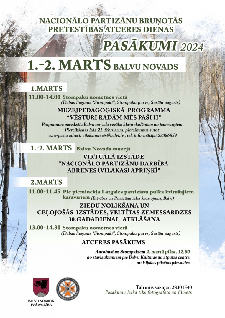 1. - 2. martā Balvu Novada muzejā virtuālā izstāde ''Nacionālo partizānu darbība Abrenes (Viļakas) apriņķī''