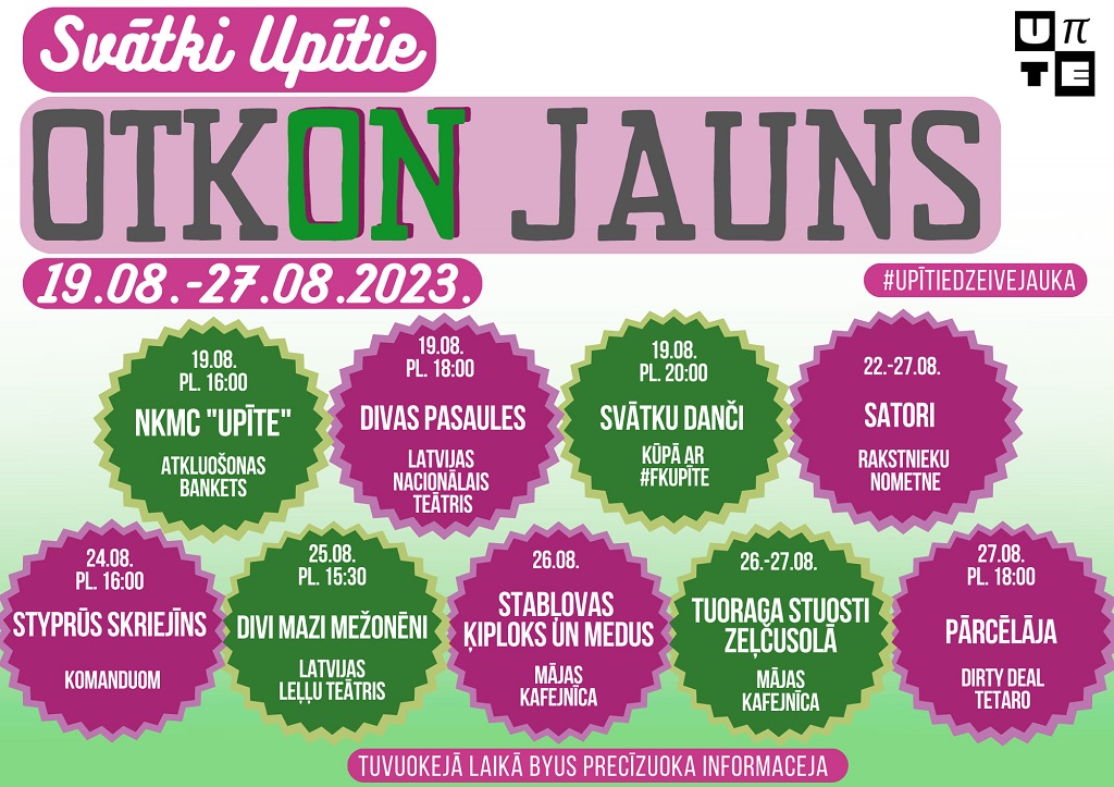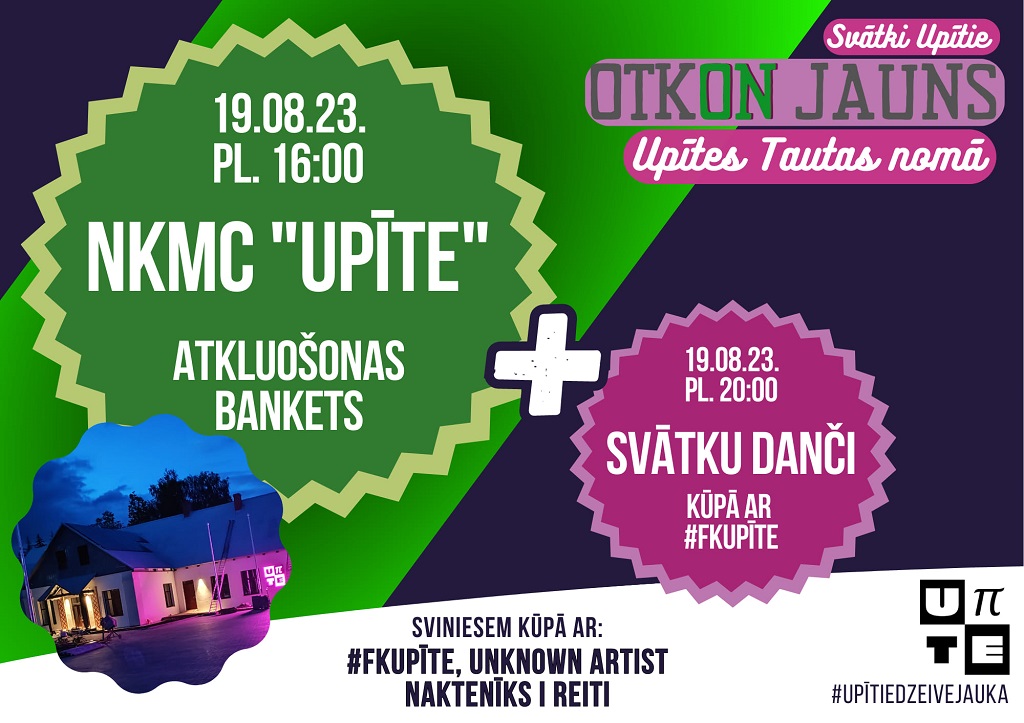 19. augustā plkst. 16.00 Nemateriālā kultūras mantojuma centra "Upīte" atklāšanas svētki kopā ar folkloras kopu ''Upīte'', ''Unknown Artist'', ''Naktenīks i reiti''. Īpašie viesi vīru kopa ''Vilki''.