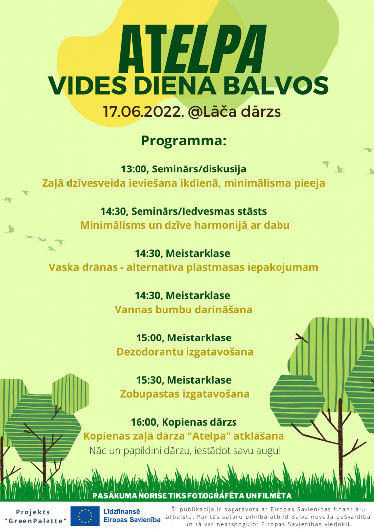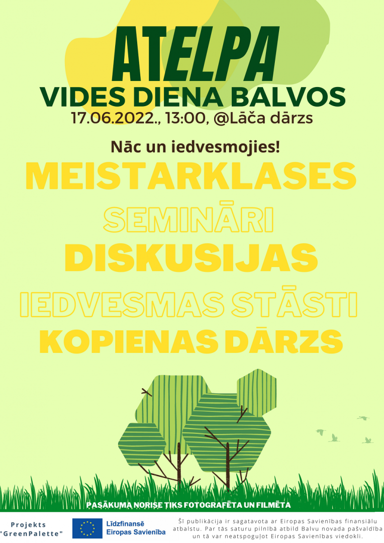Balvos, Lāča dārzā, šī gada 17.jūnijā norisinājās vides pasākums “aTELPA” ar mērķi aktualizēt vides jautājumus, popularizējot “zaļo dzīvesveidu” un dabas izziņu caur dažādām meistarklasēm, semināriem un informatīvo kampaņu.