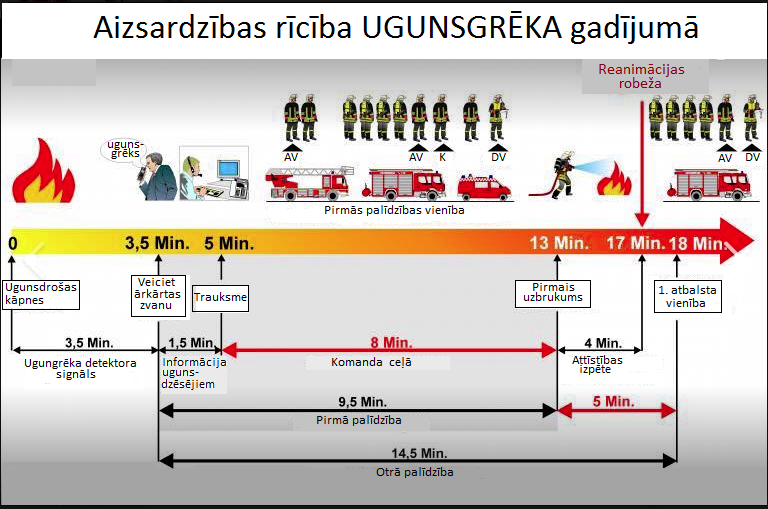 Brīvprātīgo ugunsdzēsēju darbība Latvijā šogad atzīmēja 156.gadadienu. Ne velti mūsu senči organizēja šo kustību, lai nelaimes brīdī varētu ātri un organizēti mazināt ugunsnelaimes sekas un likvidēt to. Jo ātrāk mēs atklāsim nelaimi, jo mazāku ļaunumu tā nodarīs. Nelaimi sākumstadijā palīdz atklāt dūmu detektori, bet te ir jāseko nekavējošai rīcībai pirmajās minūtēs un izšķiroša loma te ir vietējiem iedzīvotājiem - sabiedrībai. Cik tā ātri iesaistās nelaimes ierobežošanā, likvidācijā. Jo ātrāk uzsākti pirmie glābšanas pasākumi, jo mazāki nelaimes apmēri un ierodoties palīgspēkiem vai operatīviem dienestiem ir iespējams izvairīties no lieliem zaudējumiem. Ne velti gadu gaitā eksperti ir izvērtējuši kad pirmajās 13 minūtēs no nelaimes sākuma ir jānotiek pirmajiem dzēšanas darbiem, jo 17.minūtes brīva degšana ir riska robeža tam, lai rastos nekontrolēta un ātra attīstība lielās platībās. Tāpēc dzēšanas darbos iesaistāmos papildspēkus plāno tā, lai tie sāktu ierasties jau no 18. minūtes.