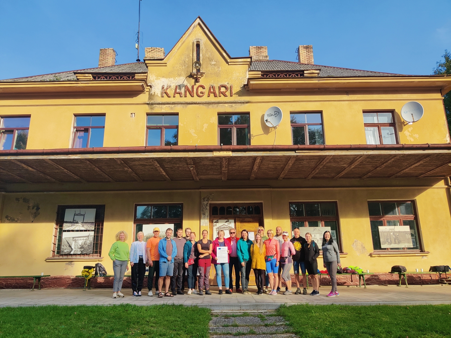 Ropažu novada tūrisma speciālistes Anna Imbrate-Siliņa un Ilze Amerika bija noorganizējušas 29.septembrī veicināšanas pasākumu projektā Nr. LVIII-069 “"Popularizēt Latvijas Zaļos ceļus Rīgas, Vidzemes un Latgales reģionos" (akronīms: “Latvijas zaļie ceļi”). Kangaru stacijā pulcējās projekta partneru pārstāvji no Balvu un Gulbenes novadu pašvaldībām, Vidzemes tūrisma asociācijas un vietējie velo entuziasti no Ropažu novada un Pierīgas reģiona. Plkst. 10.30 izbraucām no Kangaru stacijas un pēc plkst. 17.00 atgriezāmies atpakaļ Kangaru stacijā. Tikai izbraucot visu maršrutu, dalībniekiem bija iespējams iepazīties ar Kangaru stacijas stāstu, ielūkoties stacijas telpās. Anna un Ilze intrigu par stacijas ēku vēlējās saglabāt līdz beigām, lai visi dalībnieki būtu motivēti atgriezties Kangaru stacijā. Kangaru stacija pieder Ropažu novada pašvaldībai un katru gadu pašvaldība organizē dažādus kultūras un tūrisma pasākumus, lai veidotu atpazīstamību Kangaru stacijai, un lai iepazīstinātu dalībniekus ar Latvijas zaļo ceļu posmu Cekule – Kangari – Suntaži (Rīga – Ērgļi līniju).