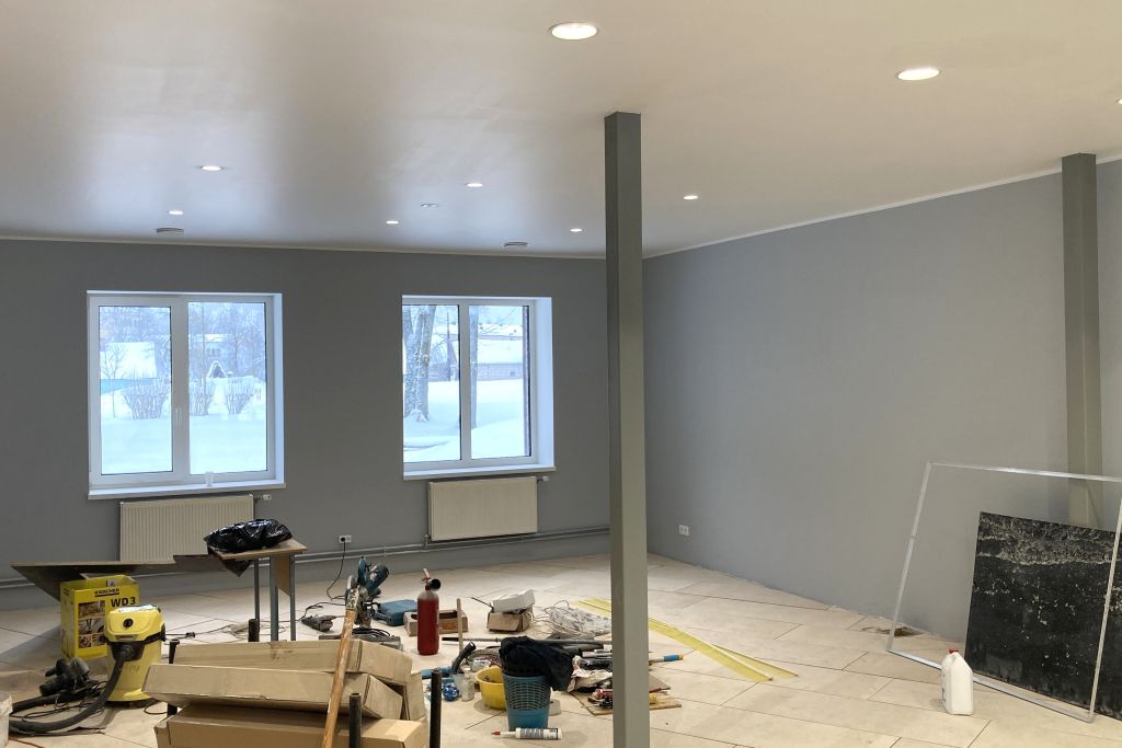 Būvniecības uzņēmums SIA “LVS Building” darbu gaitā ir nosiltinājis ēkas pamatus, fasādi un jumtu. Pilnībā nomainīta jumta konstrukcija, nomainīti visi ēkas logi un ārdurvis, siltinātas pirmā stāva grīdas. Uz jaunā jumta uzstādīti elektroenerģiju ražojošie saules paneļi. Atjaunota elektroinstalācija, uzstādīti energoefektīvi LED gaismekļi, ventilācijas sistēma. Būvniecības uzņēmums SIA “Kontrols-A” ir izpildījis iepriekš neparedzētos papildus darbus – būvkonstrukciju stiprināšana iekšējām sienām, vides pieejamības nodrošināšana. Līdz projekta noslēgumam atlikuši iekšējās apdares darbi, teritorijas sakopšana, radušos būvniecības defektu novēršana.