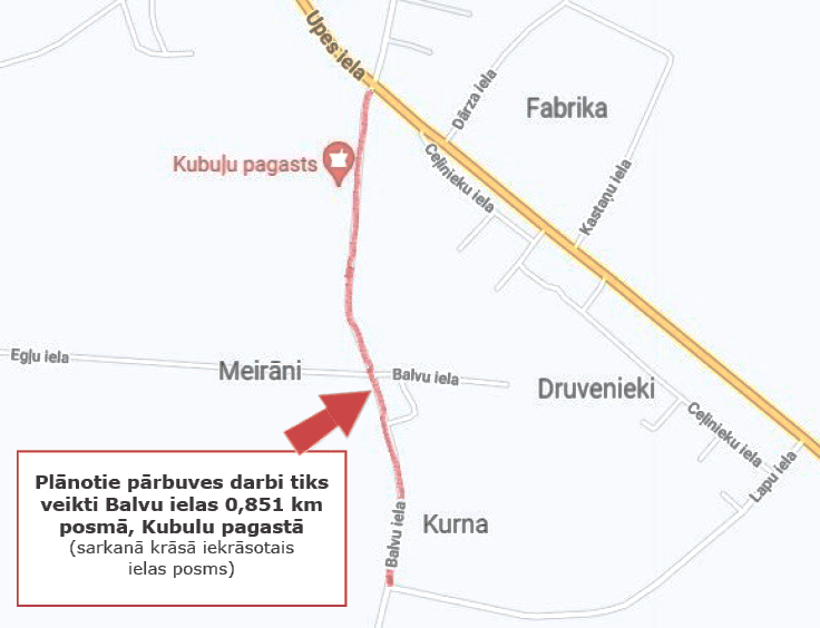 Projekta ietvaros sākotnēji tika plānots, ka izbūvēs laukumu un veiks pārbūvi Balvu ielas 0,851 km posmā Kubulu pagastā, bet veicot iepirkumu ielas posma pārbūve tika sadalīta divās kārtās un par 1.kārtas (0,63 km pārbūvi) būvdarbiem tika noslēgts līgums ar SIA “Riviera L”. Būvdarbi tika uzsākti 2021.gada jūlijā. Šogad līdz pat jūlija mēnesim būvnieks būvdarbus neatsāka, pārkāpjot līguma nosacījumus.