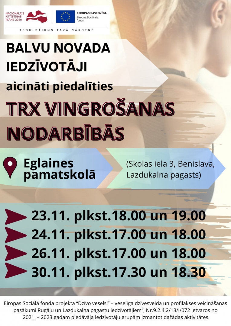 TRX vingrošanas nodarbību grafiks 2023.gada novembra mēnesim: